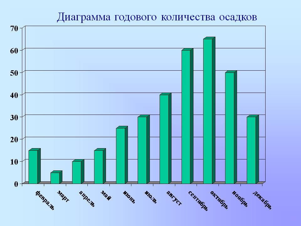 Это можно чётко и ясно увидить по диаграммам, которые отражают изменение количества осадков.