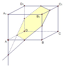 В кубе ABCDA'B'C'D' проведено сечение через середины ребер AB,AD,BB'. Каким многоугольником является сечение?