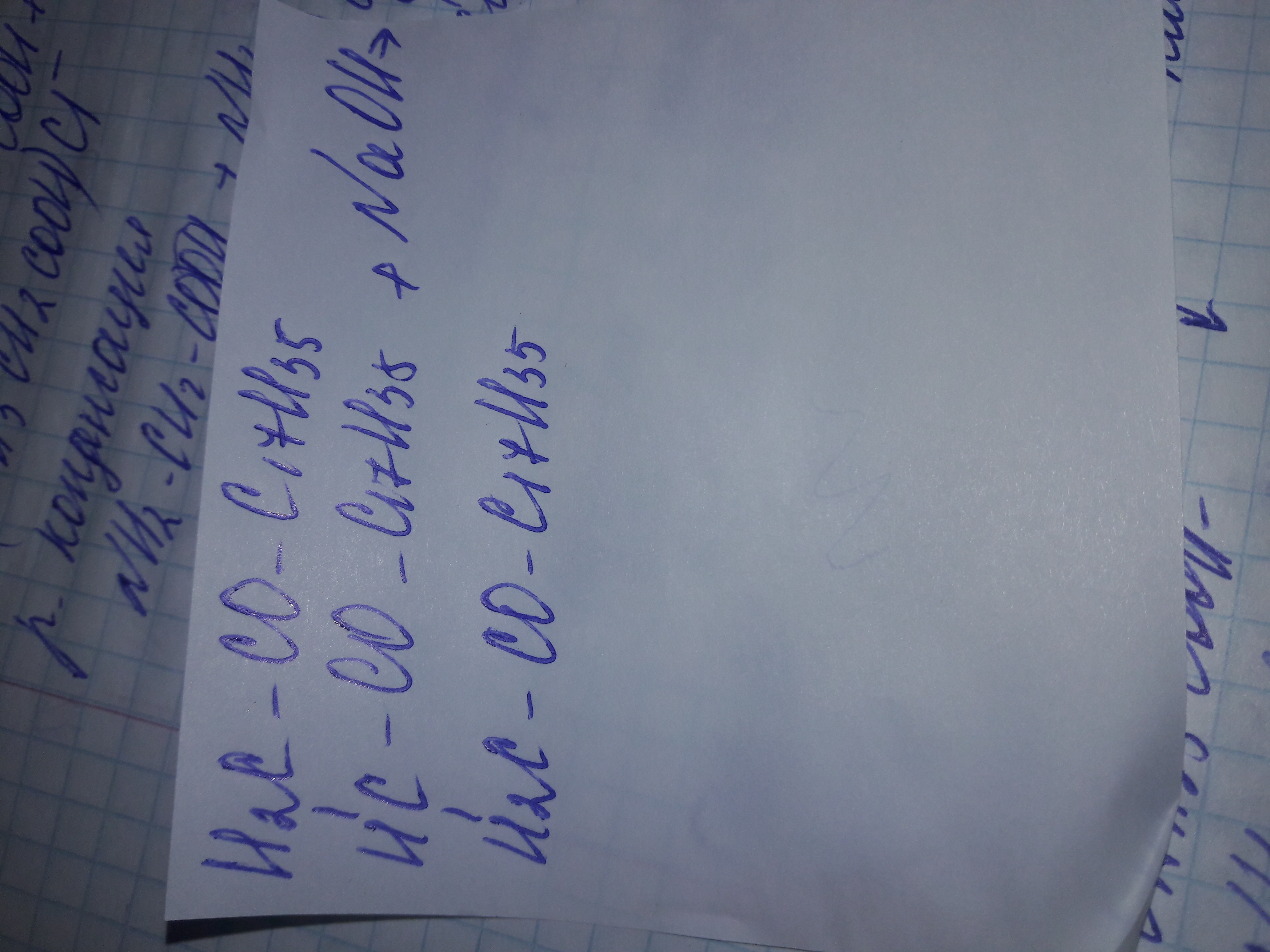 Ch2(OH)-Ch(OH)-Ch2(OH)+ 3C17H35COONa и перед гидроксидом натрия 3 надо поставить