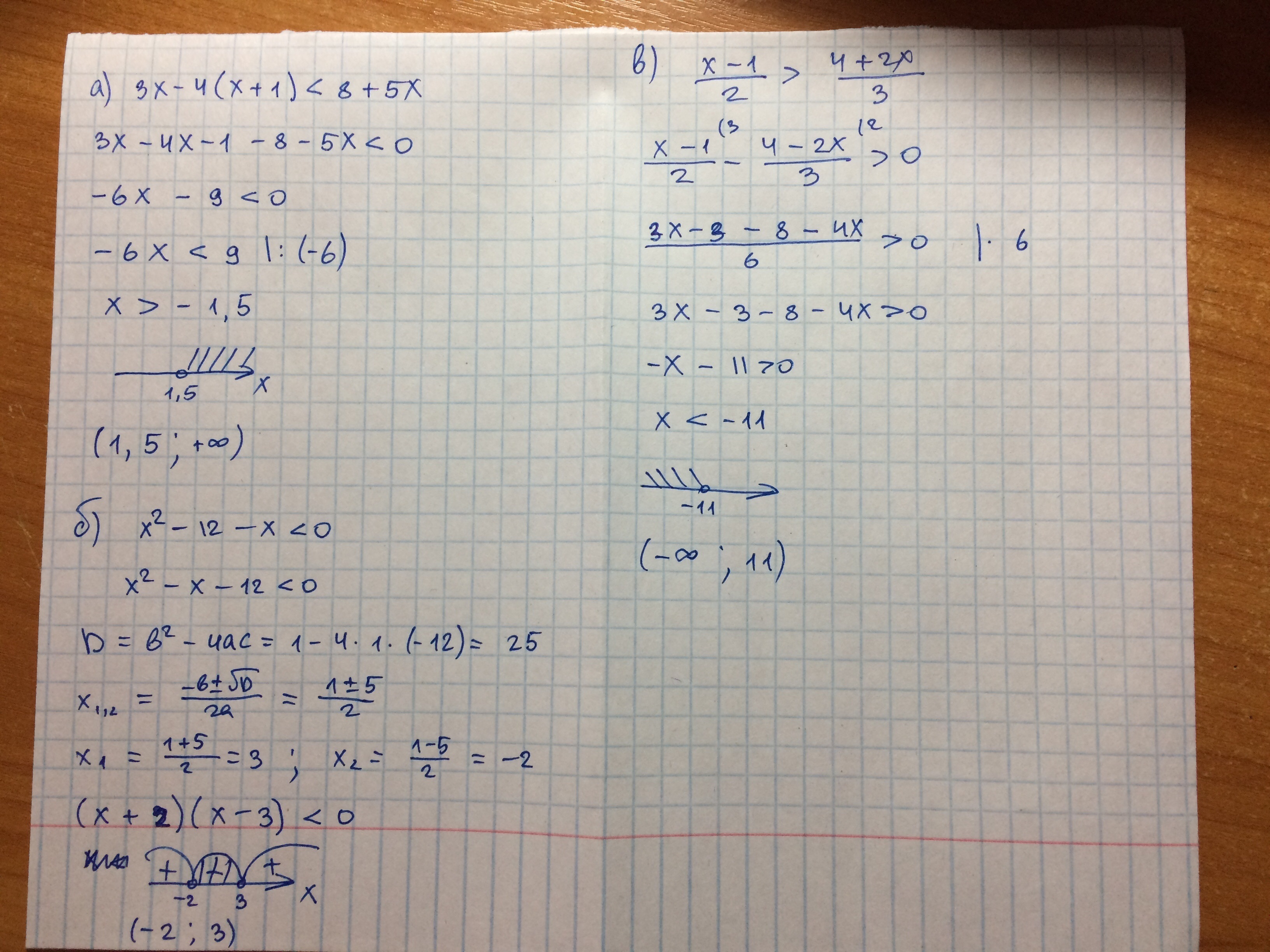 б)x∈(-3,4)
