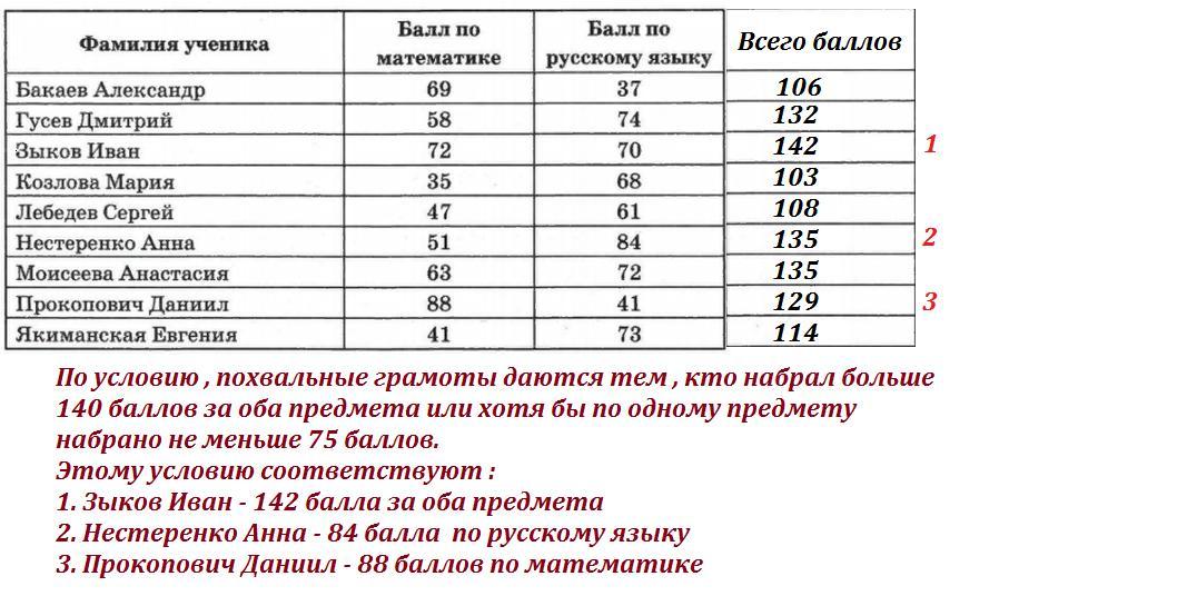 Похвальные грамоты дают тем школьникам, у кого сумма баллов за