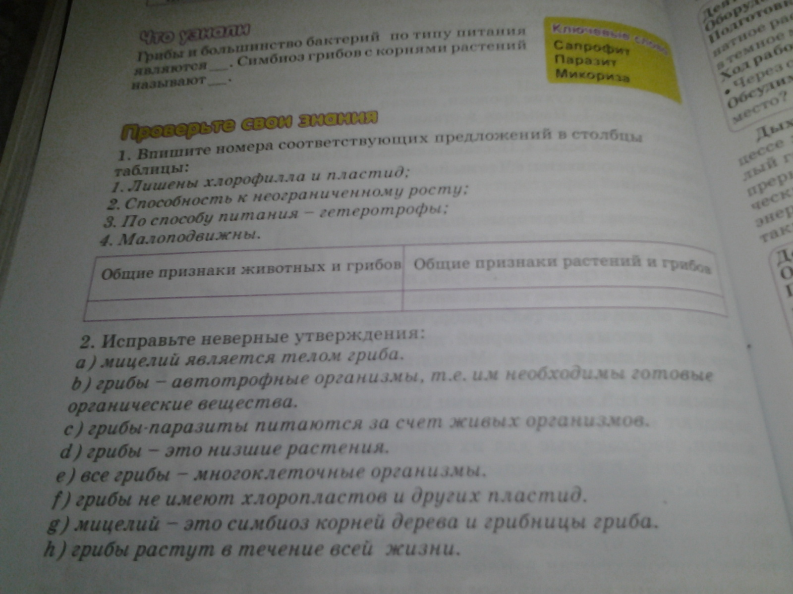 2 задание. Грибы- гетеротрофные организмы. Они не являются паразитами. Симбиоз грибов и деревьев- это микориза, а не мицелий