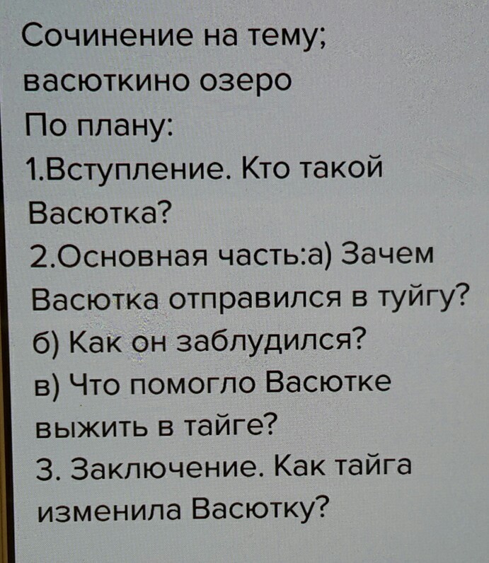 3. Васютка обнаружил озеро, которое последовательно благодарные рыбаки назвали в его честь. Рыбаки зауважали Васютку за то, что он смог "победить тайгу" и за то, что мальчик показал им новое озеро с большими косяками белой рыбы.