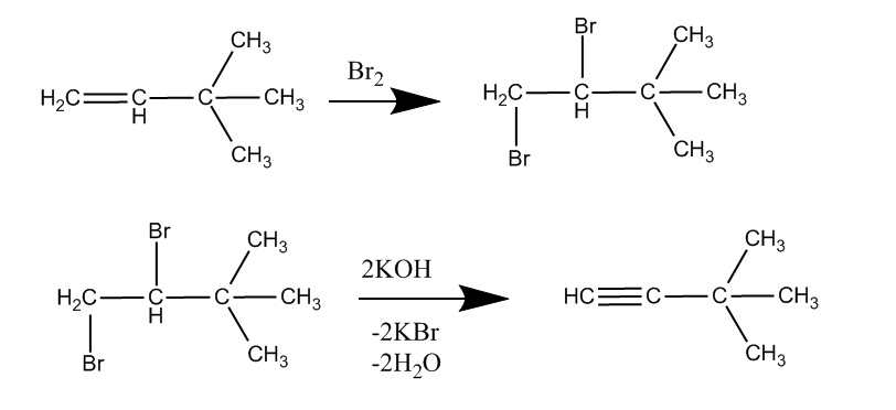 2)какой углеводород получится если на 3,3-диметилбутен-1 подействовать бромом, а затем избытком спиртового раствора щелочи