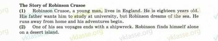 Robinson Crusoe, a young man, lived in England. He was eighteen years old. His father wanted him to study at university, but Robinson dreamt of the sea. He run away from home and his adventure began.