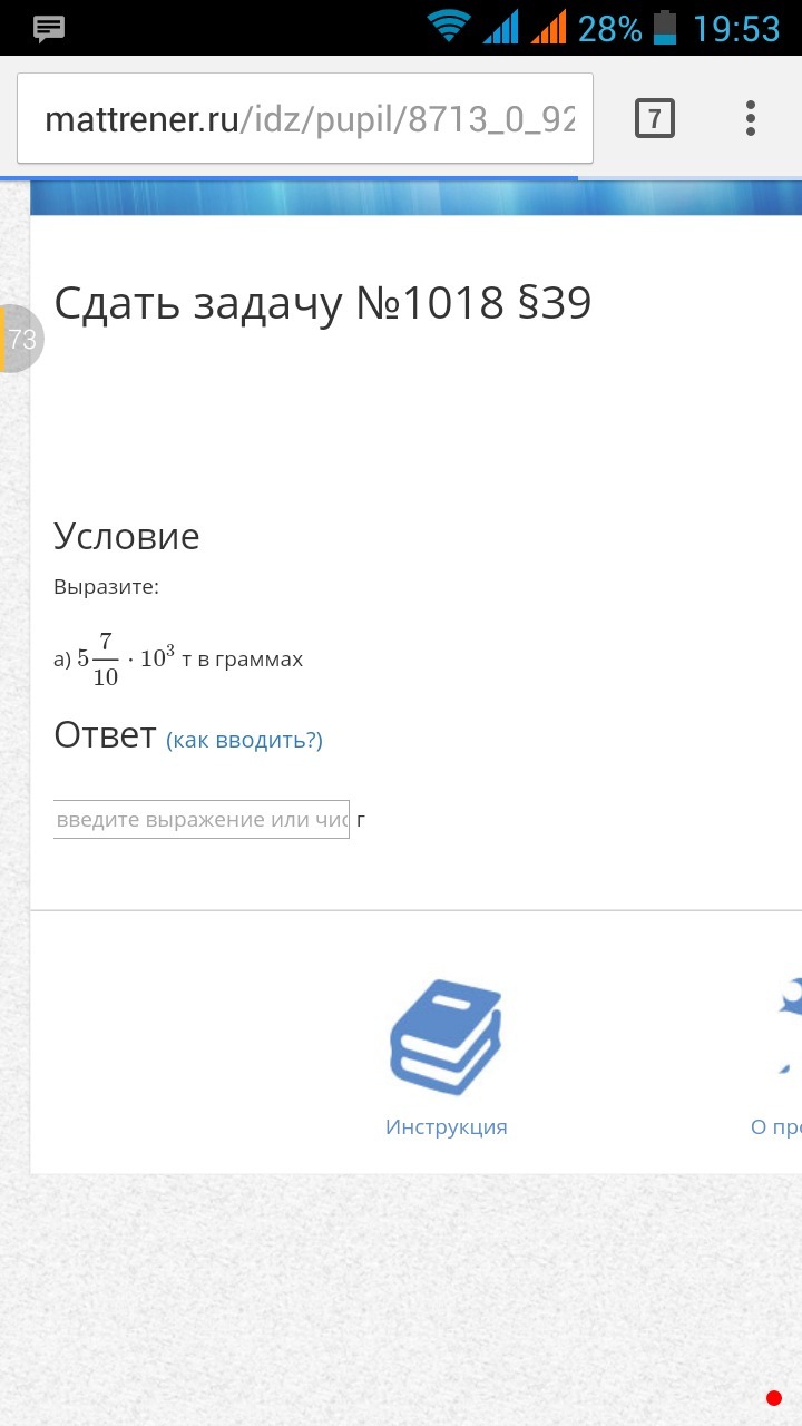 5 7/10 * 10^3 т =5.7 * 10^3 = 5.7 * 10^9 г