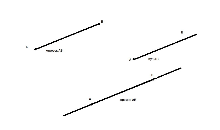 даны точки A и B пострийте отрезок АВ лучАВ прямуюАВ. тут надо просто начертить без пояснения подскажите пж!!!!!!!
