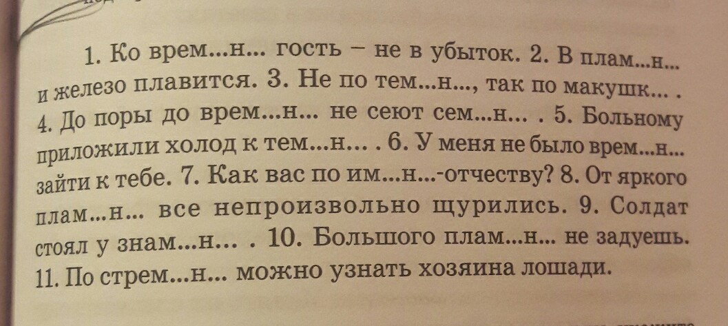 Времени, пламени, темени, времени, семени, темени, имени, пламени, знамени, племени, стремени. Везде суффикс -ЕНИ-