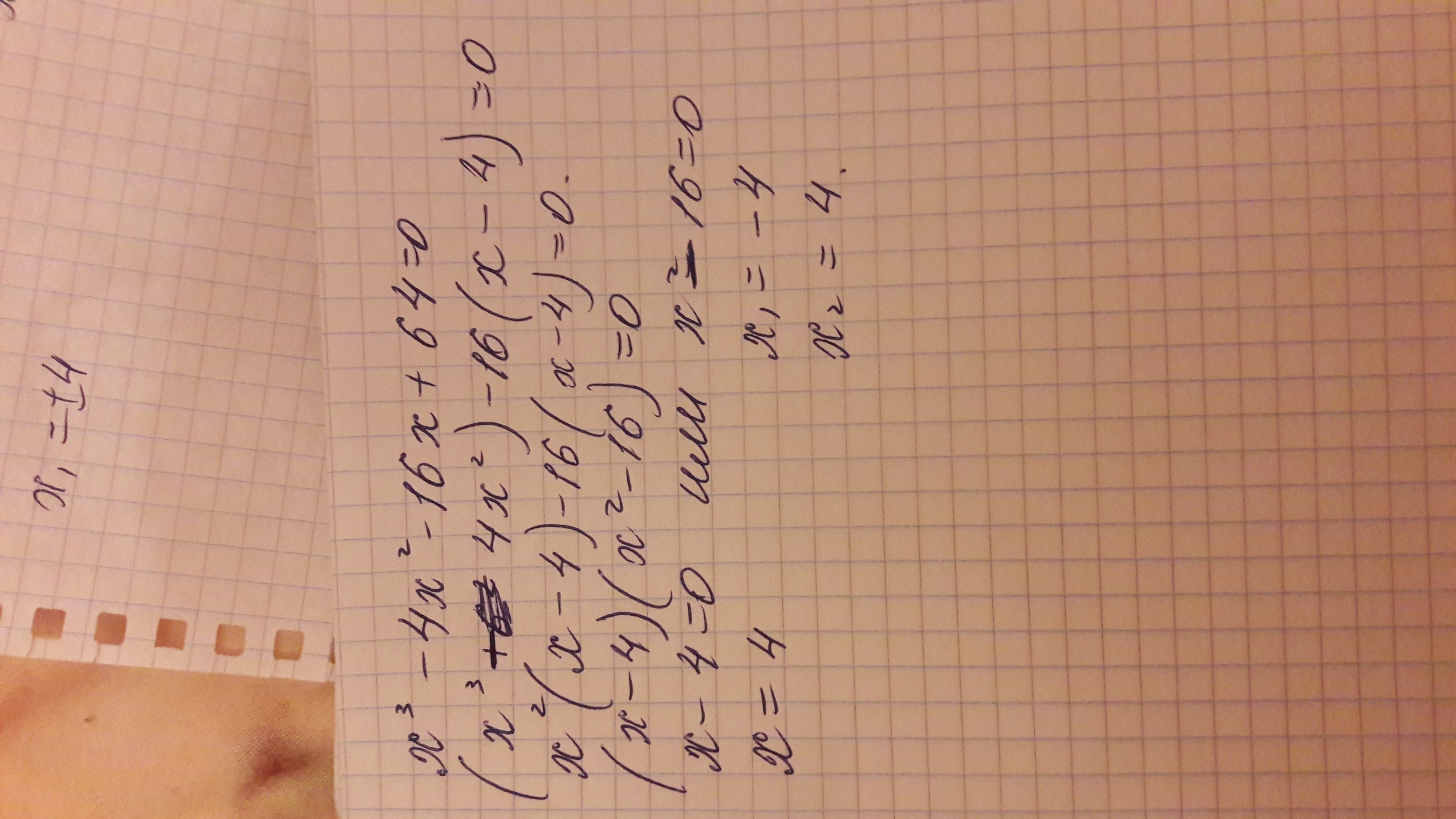 x^3 - 4x^2 - 16x + 64 = 0