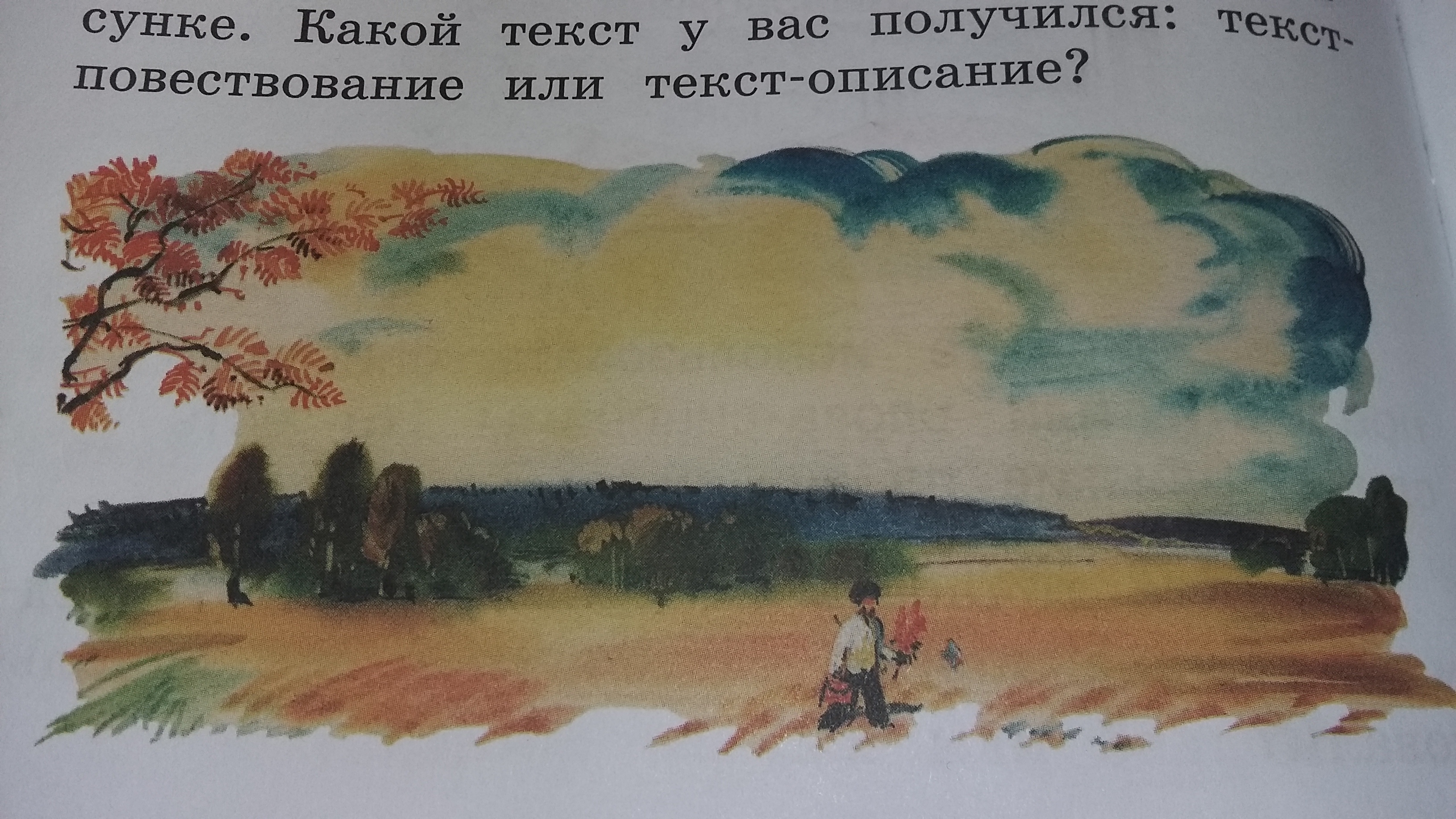 2 класс. Расскажите, что изображено на рисунке. Какой текст у вас получился: текст-повествование или текст-описание?