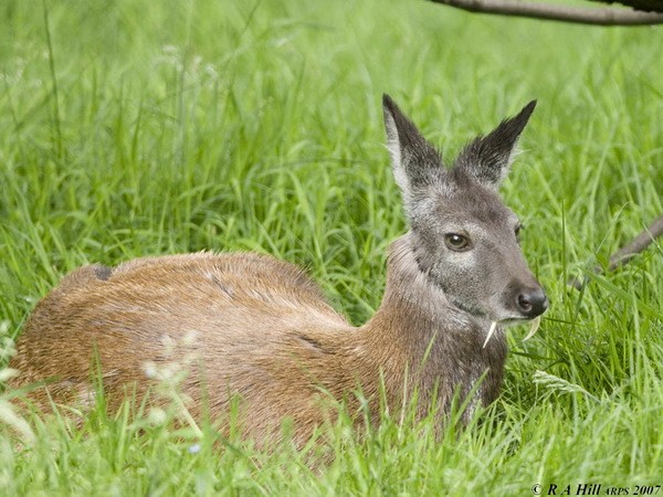 Ростом со среднюю собаку, хотя имеет родство с другим крупным благородным животным. Изо рта торчат клыки, хотя животное это мирное, травоядное.