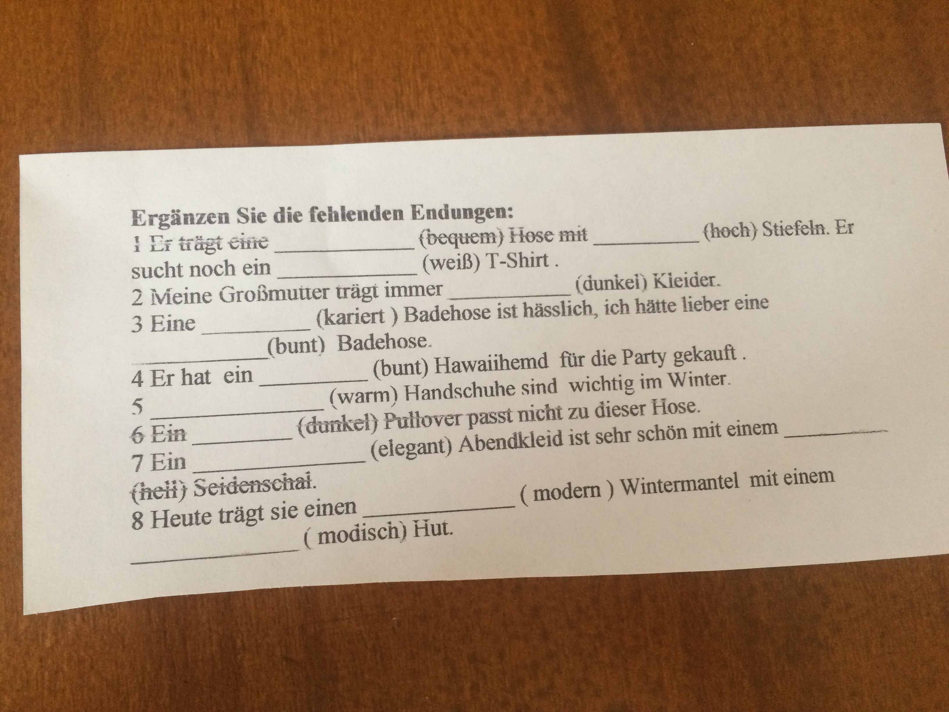 Er trägt eine bequeme Hose mit hohen ( hoch , но hohe в ед числе и hohen в данном случае во множеств числе датив) Stiefeln .