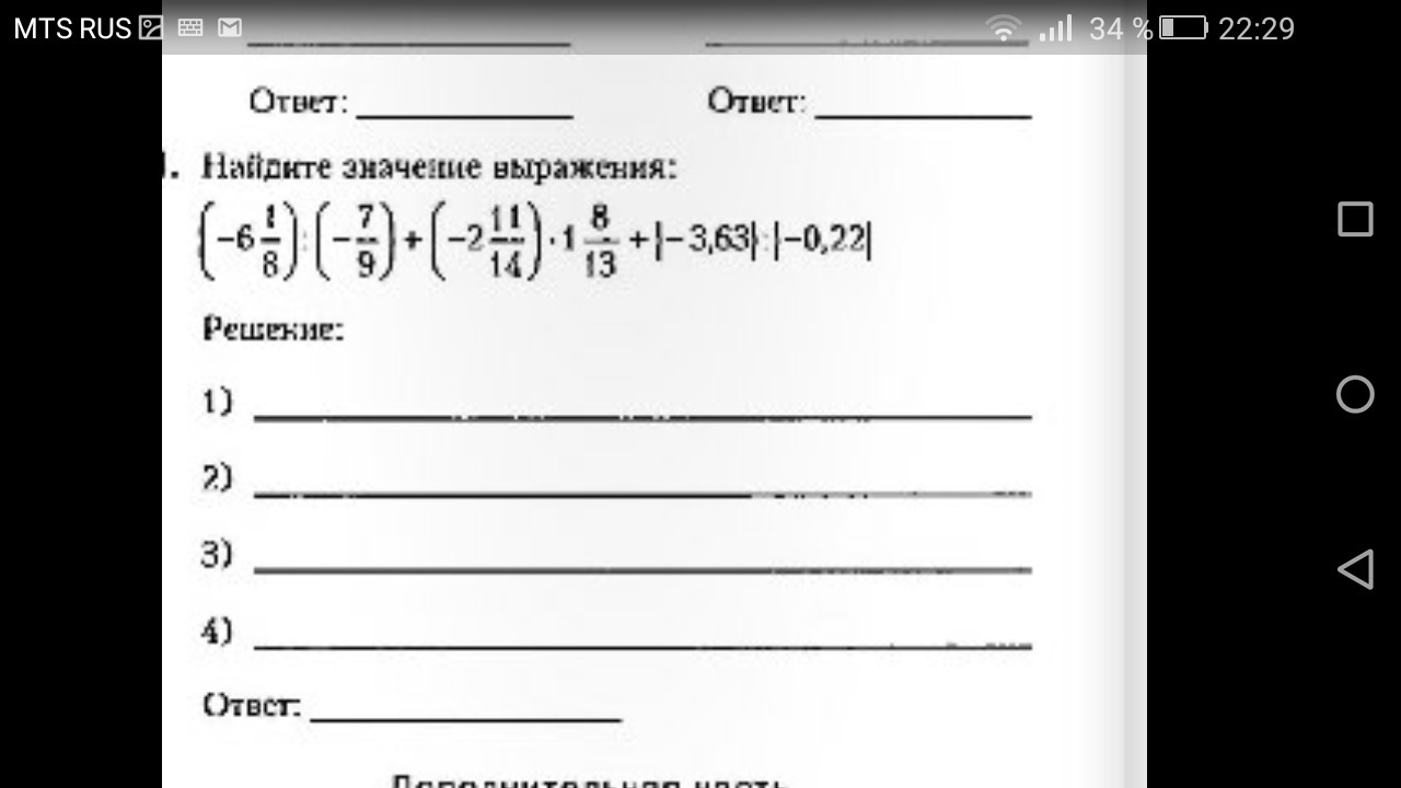 1) (- 6 1/8 ) / (- 7/9) = (- 49/8) / (- 7/9) = 63/8