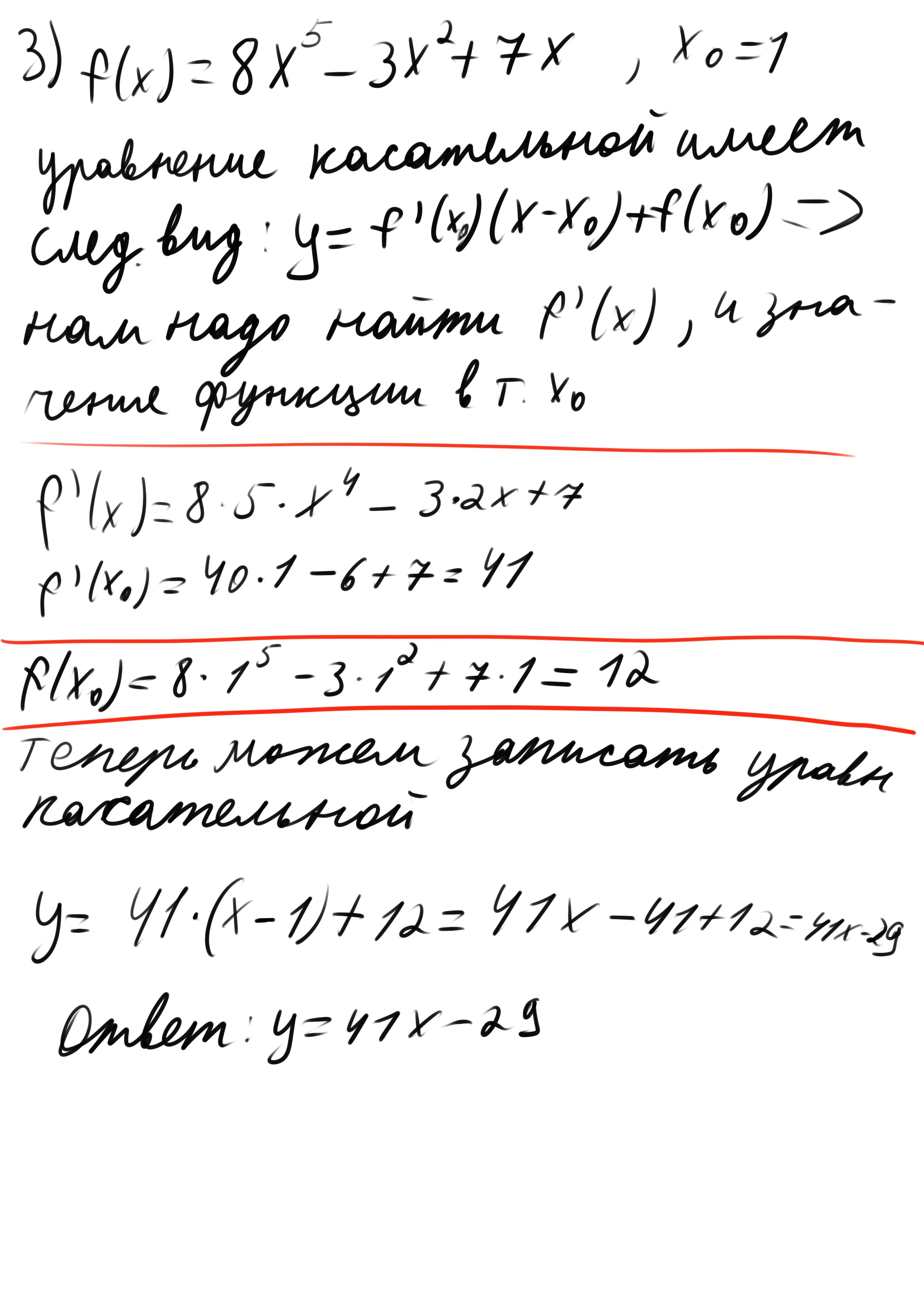 это решение для первых трех номеров. чтобы решить 4-ый, нужно найти производную и нарисовать числовую ось и посмотреть промежутки возрастания и убывания и посмотреть как будет меняться знак при переходе точки, где производная равна нулю... это в инете спокойно можно найти