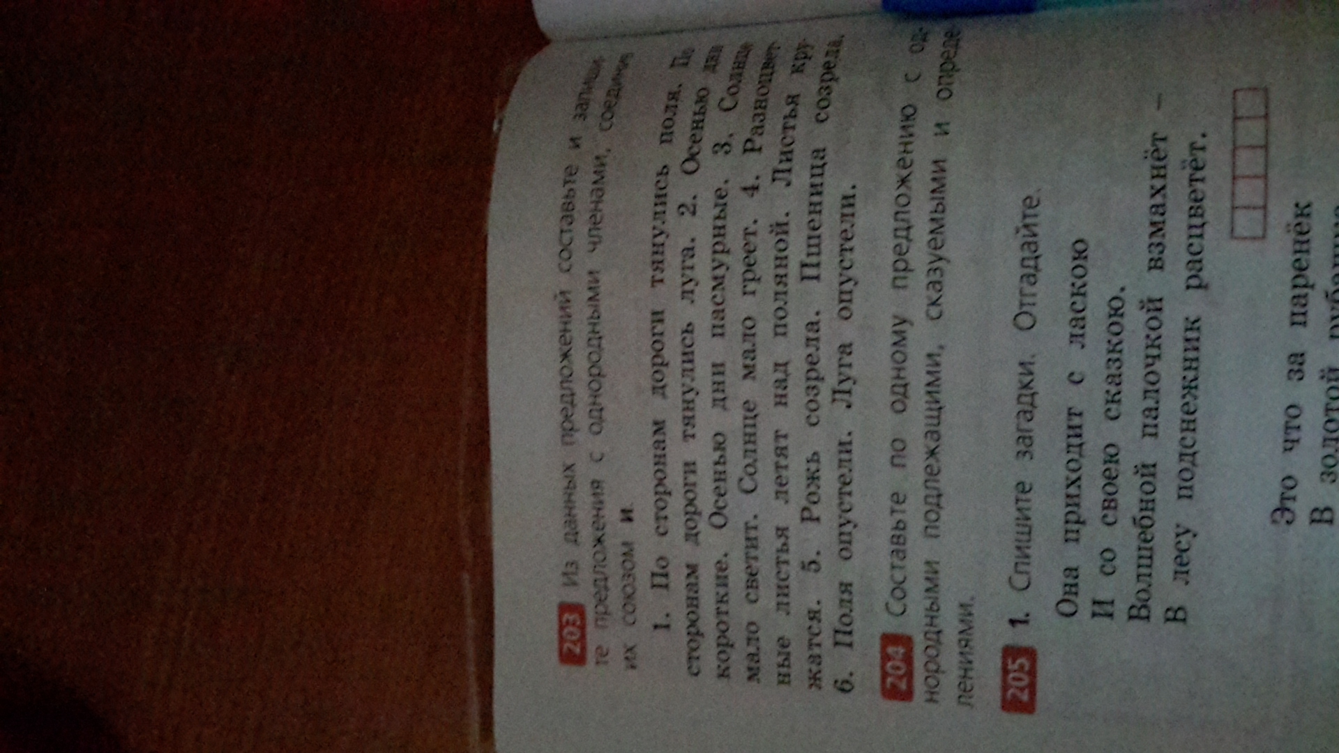 помогите пожалуйста с номером 203 из данных предложений Составьте и запишите Предложения с однородными членами соедините их с союзом и