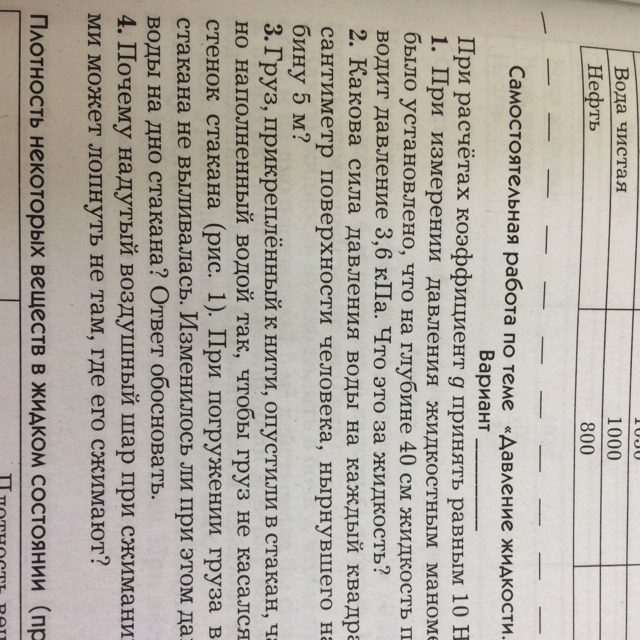 p=P/g*h=3600/10*0,4=900 кг/м3