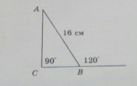 тк угол А=30° и лежит напротив стороны ВС, > ВС=половине АВ(гипотенузы), > ВС=16:2=8 (см)