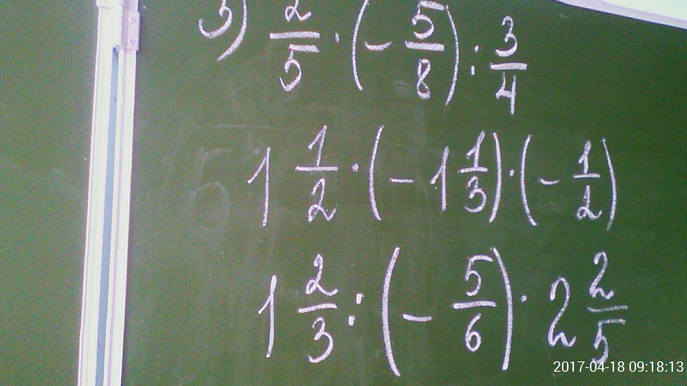 1 1/2*(-1 1/3)*1 1/4*(-1 1/5)*1 1/6= 3 1/2 1 1/2*(-1 1/3)=3/2*(-4/3)=-2 -2*1 1/4=-10/4 -10/4*(-1 1/5)=-10/4*(-6/5)=3 3*1 1/6=21/6=3 1/2