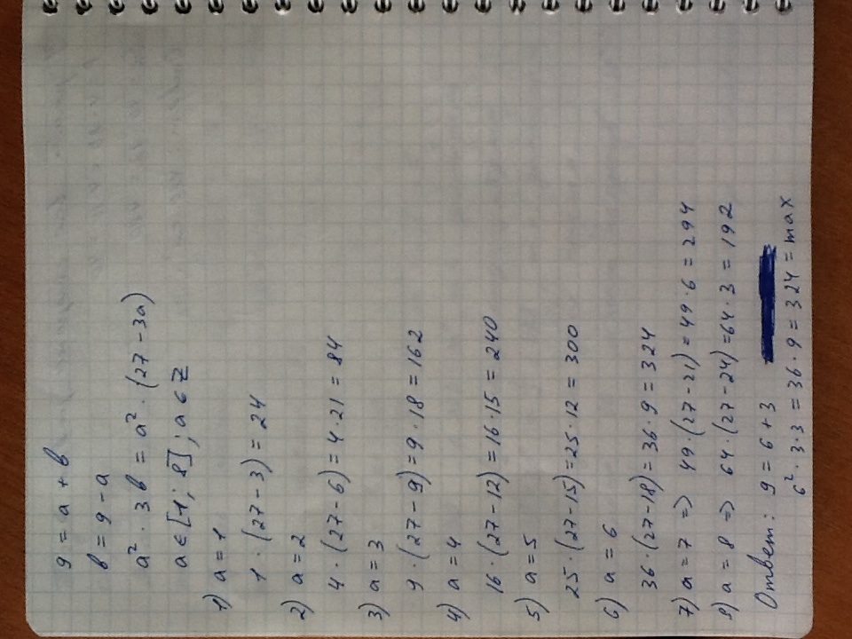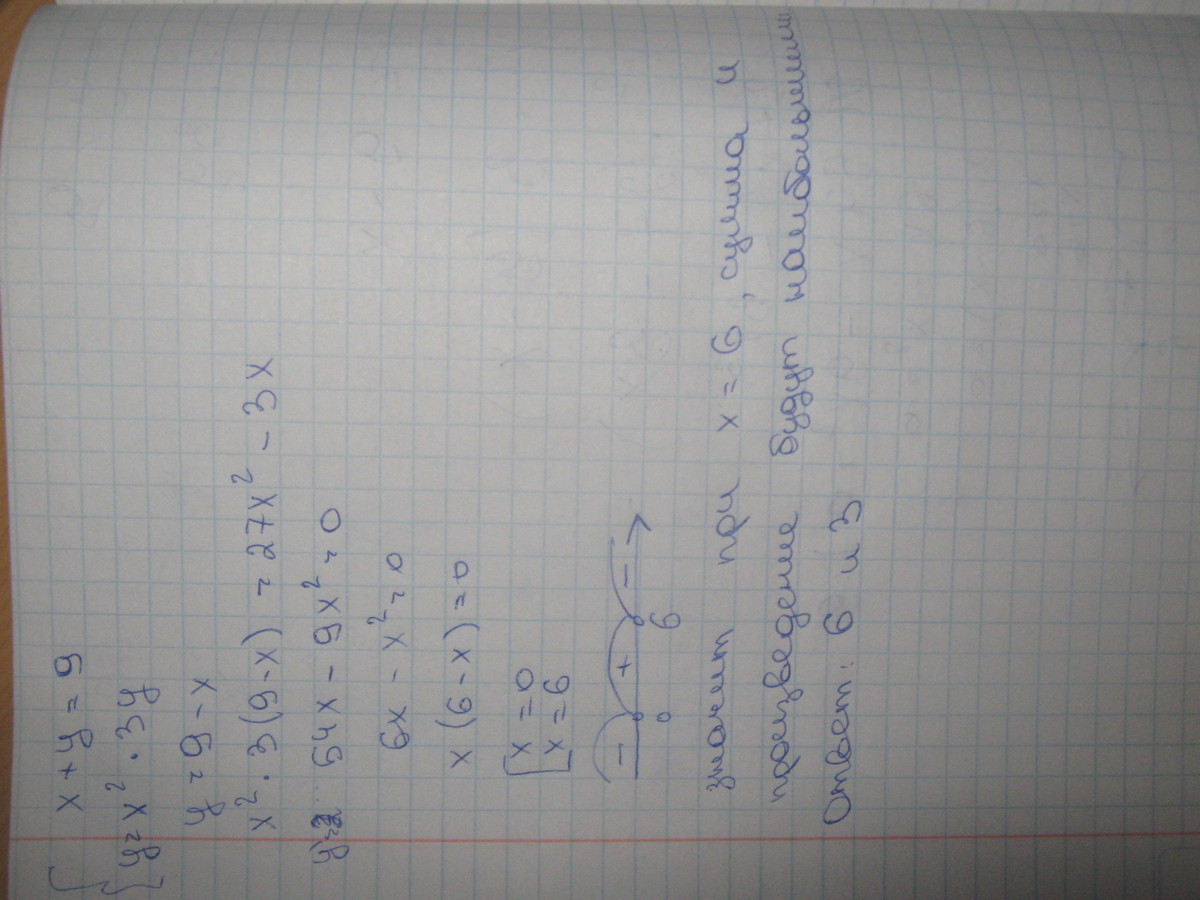 Число 9 представить в виде суммы двух неотрицательных слагаемых так, чтобы произведение квадрата одного из них на утроенное другое слагаемое было наибольшим.