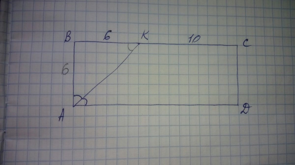 биссектриса угла А параллелограмма АБСД пересекает сторрну БС в точке К.найдите периметр параллелограмма , если БК=6,СК=10
