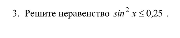 Разбиваем на 2 выражения sinx =< 1/2 и sinx =>-1/2, получаем что x [-(пи)/6 +- (плюс или минус) 2(при)k; (по)/6 +- 2(пи)k]