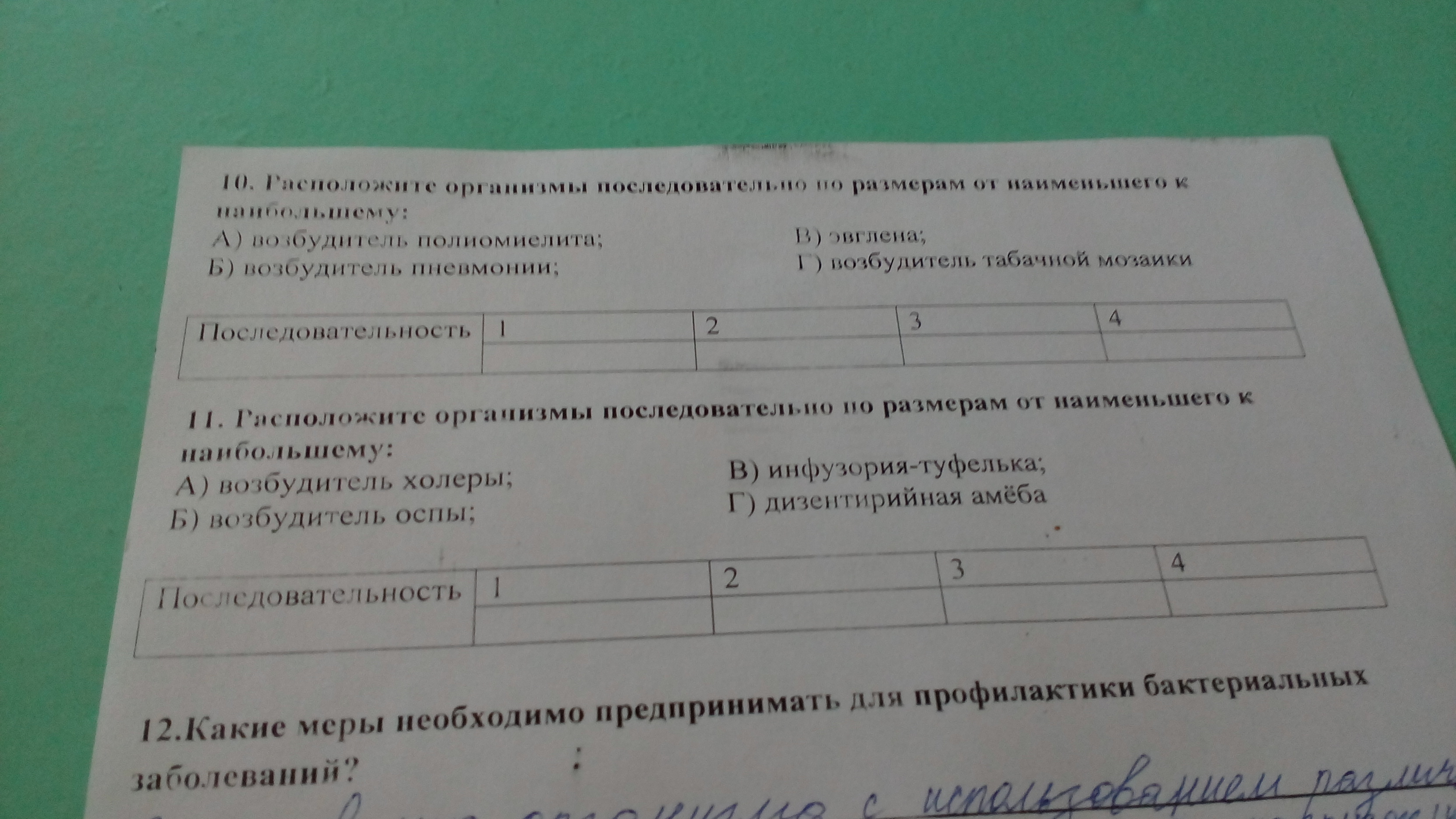 2) оспа - днк вирус, холера - рнк вирус спиралевидной формы, инфузория на пару миллиметров меньше амебы, которая не имеет постоянной формы тела: