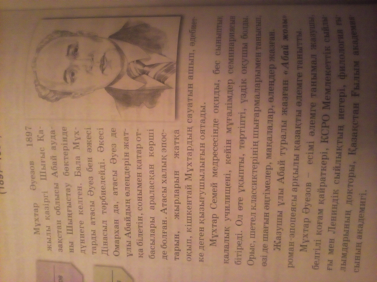 Мұхтар Әуезов родился 1897 года в Восточном Казахстане в Абайской области в предгорьях Шынгыстау.Ребенка воспитавал дедушка Әуез и бабушка Дінасыл.Отец Омархан и дедушка Әуез наизусть знают стихи великого Абая.Дедушка читал стихотворения народных эпосов,и учил маленького Мұхтара грамотности,пробуждал интерес к литературе.
