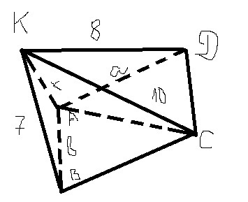 напишите с доно, решение и покажите какой примерно юудет рисунок. Из вершины А прямоугольнике АБСД восстановлен перпендикуляр АК и его плоскости, расстояние ну конуса К которого до других вершин равна 7,8, и 10м. Найти длину перпендикуляра АК.