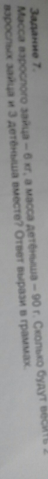 реши задачу масса взрослого зайца 6 кг а масса детеныша 90 г Сколько будет весить 2 взрослого зайца и 3 черных шара вместе ответ вырази в граммах