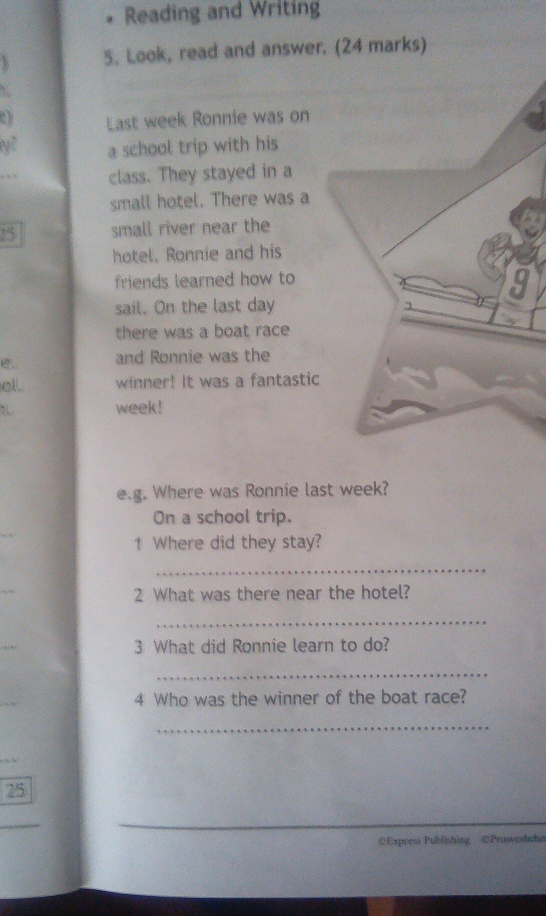 4) Ronnie was the winner of the boat race.