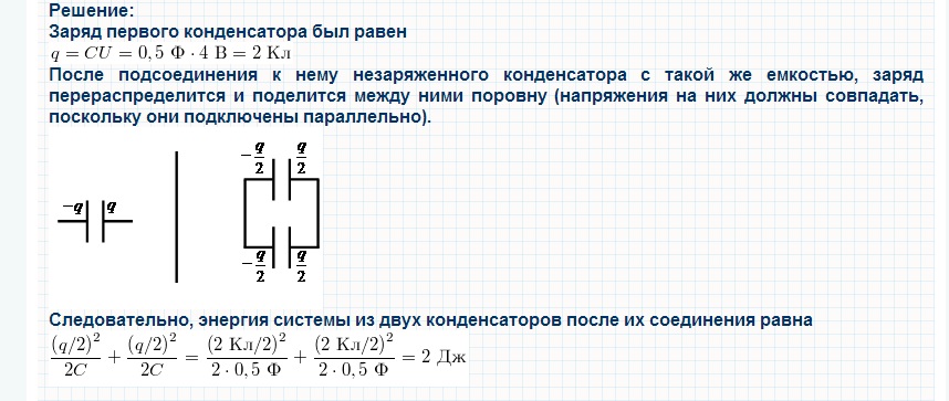 Конденсатор электроемкостью 0.5 Ф заряжен до 4 В затем к нему параллельно присоед незаряженный конденсатор той же электроемкости. определить энергию системы (ОЧЕНЬ СРОЧНО)