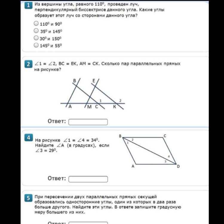 1) Так как биссектриса то половина угла будет 110/2=55°