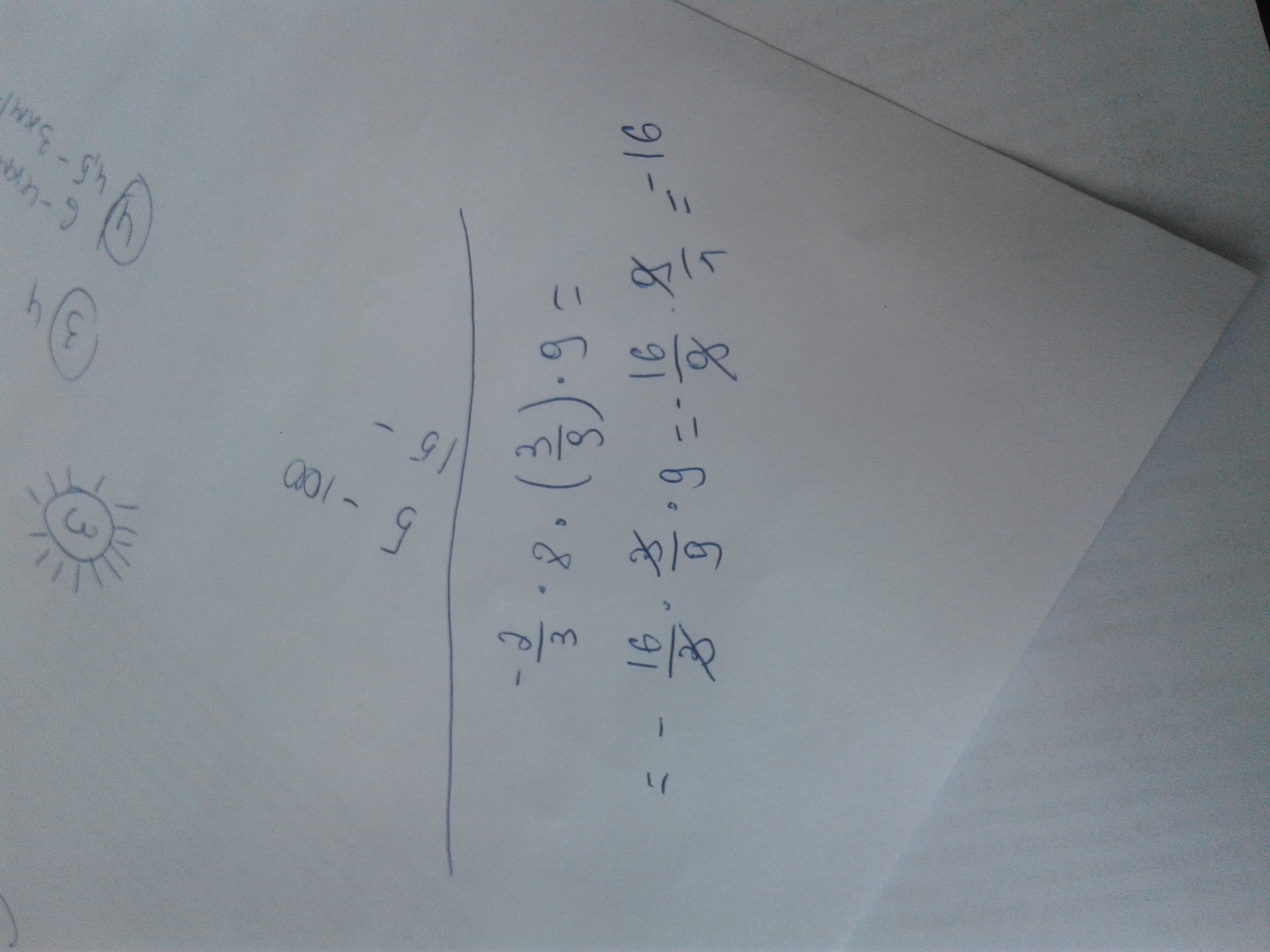 - 2/3 * 8 * (3/9) *9 = - 2/3 * 8 * 3 = - 2/3 * 24 = - 16