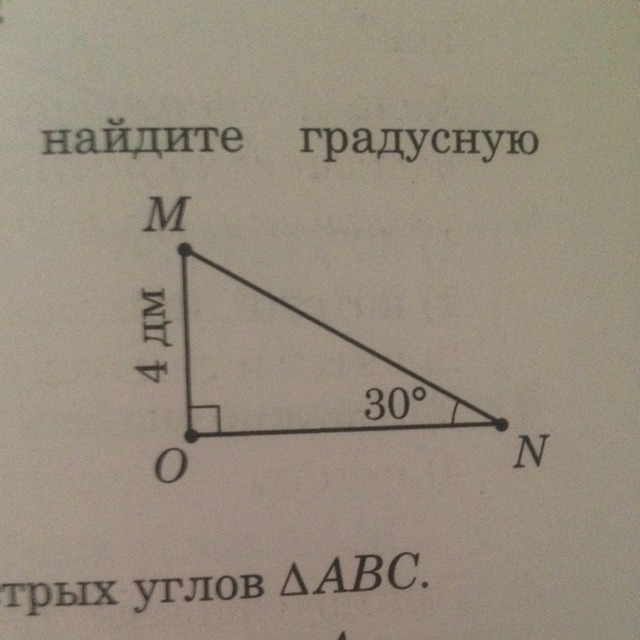 Угол м= 60 градусов. ( угол О=90, N=30, сумма всех углов 180. 180-90-30=60.). MN= 8 см. ( Катет что лежит на против угла 30 градусов = половине гипотенузы)
