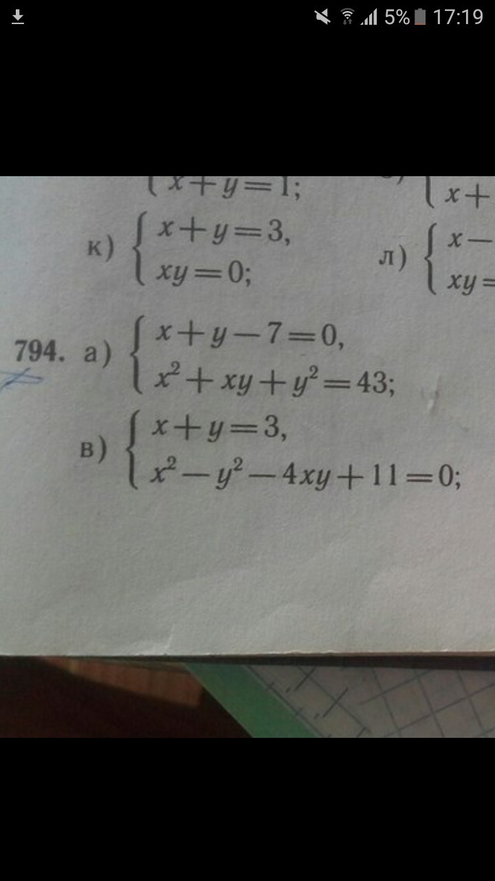 x²+yx+y²=43 (7-y)²+(7-y)y+y²-43=0 y²-14y+49+7y-y²+y²-43=0