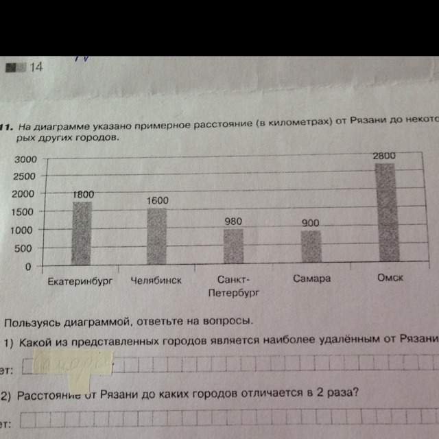 На диаграмме указано примерное расстояние ( в километрах) от Рязани до некоторых других городов