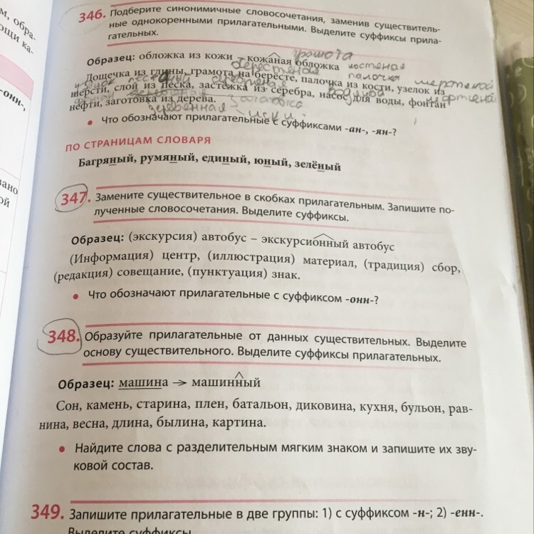 Сон сонный,камень каменный,старина старинный,плен пленный, батальон батальённый, диковина диковинный, кухня кухонный,бульон бульонный, равнина равнинный, весна весенний, длина длинный,