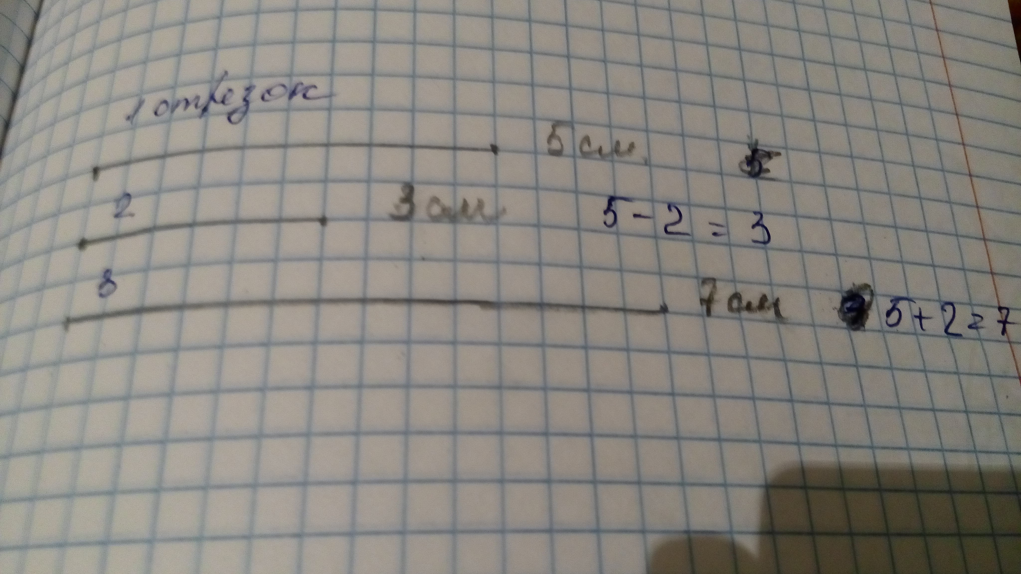 2 отрезок 5-2=3см
