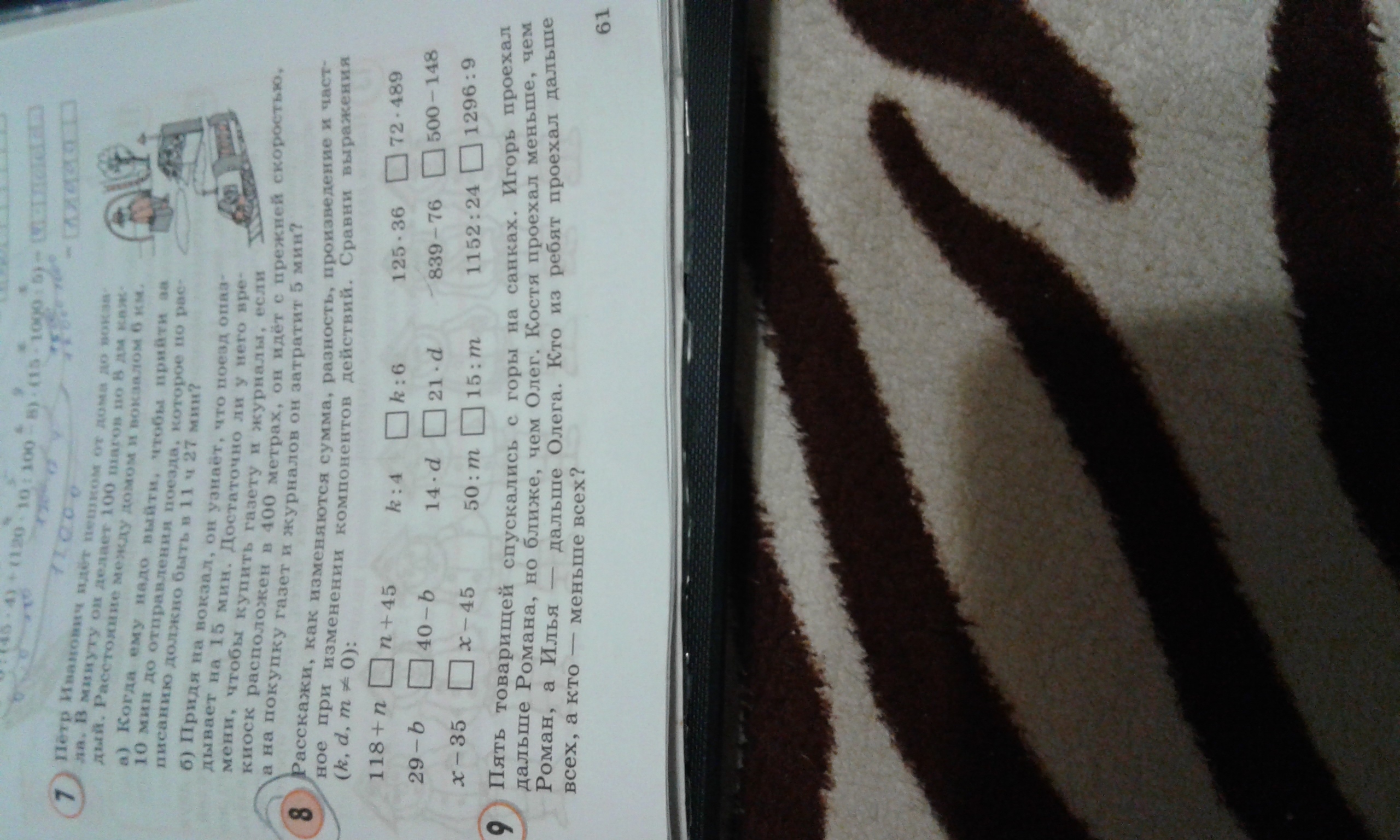 Задание 8: Расскжи, как изменяются сумма, разность, произведение и частное при изменении компонентов действий. Сравни выражения (k,d,m≠ 0). Помогите пожалуйста