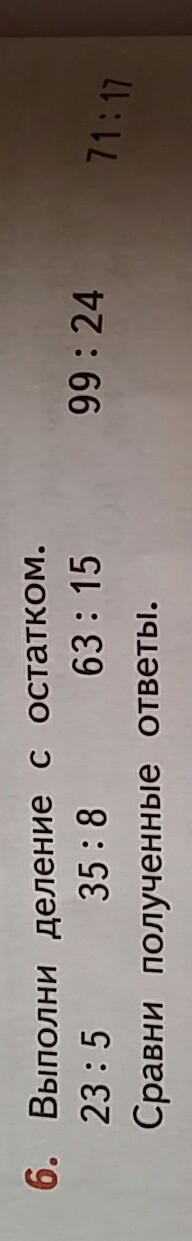 23:5=4(ост.3),35:8=4(ост.3),63:15=4(ост.3),90:24=3(ост.18),71:17=4(ост.3)