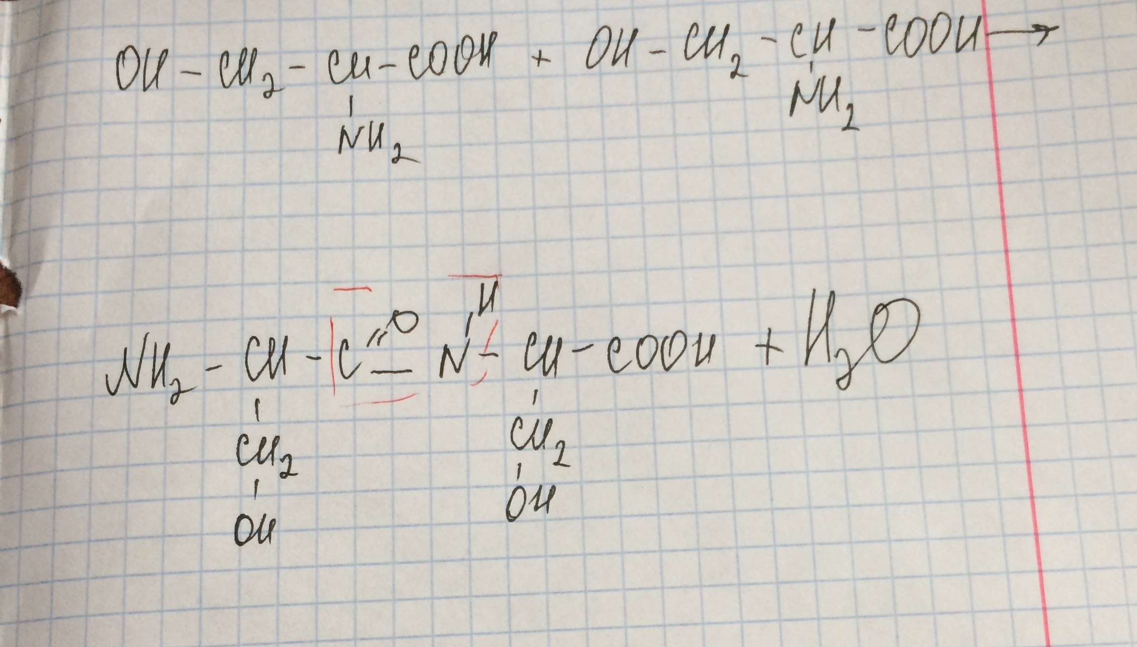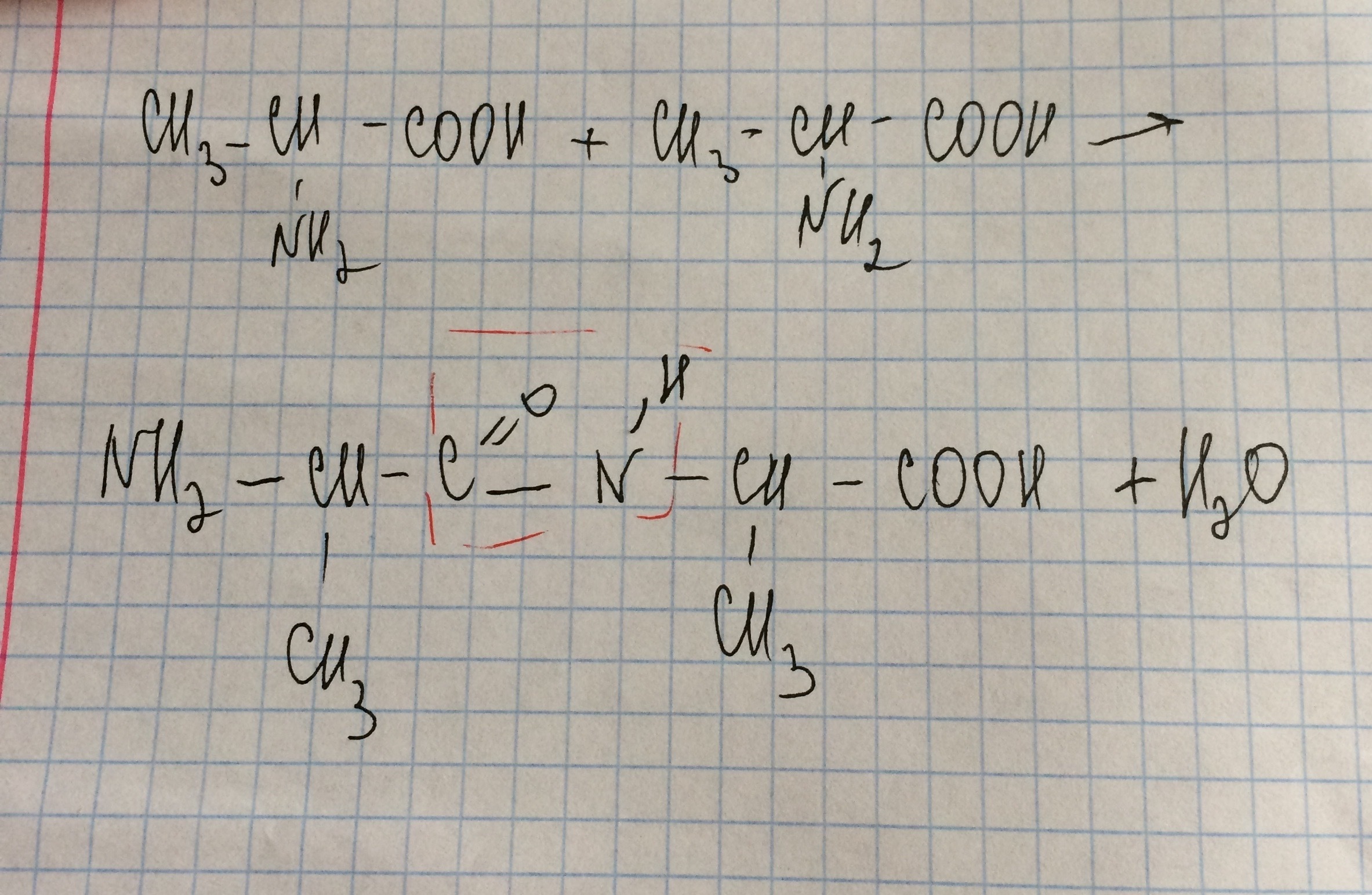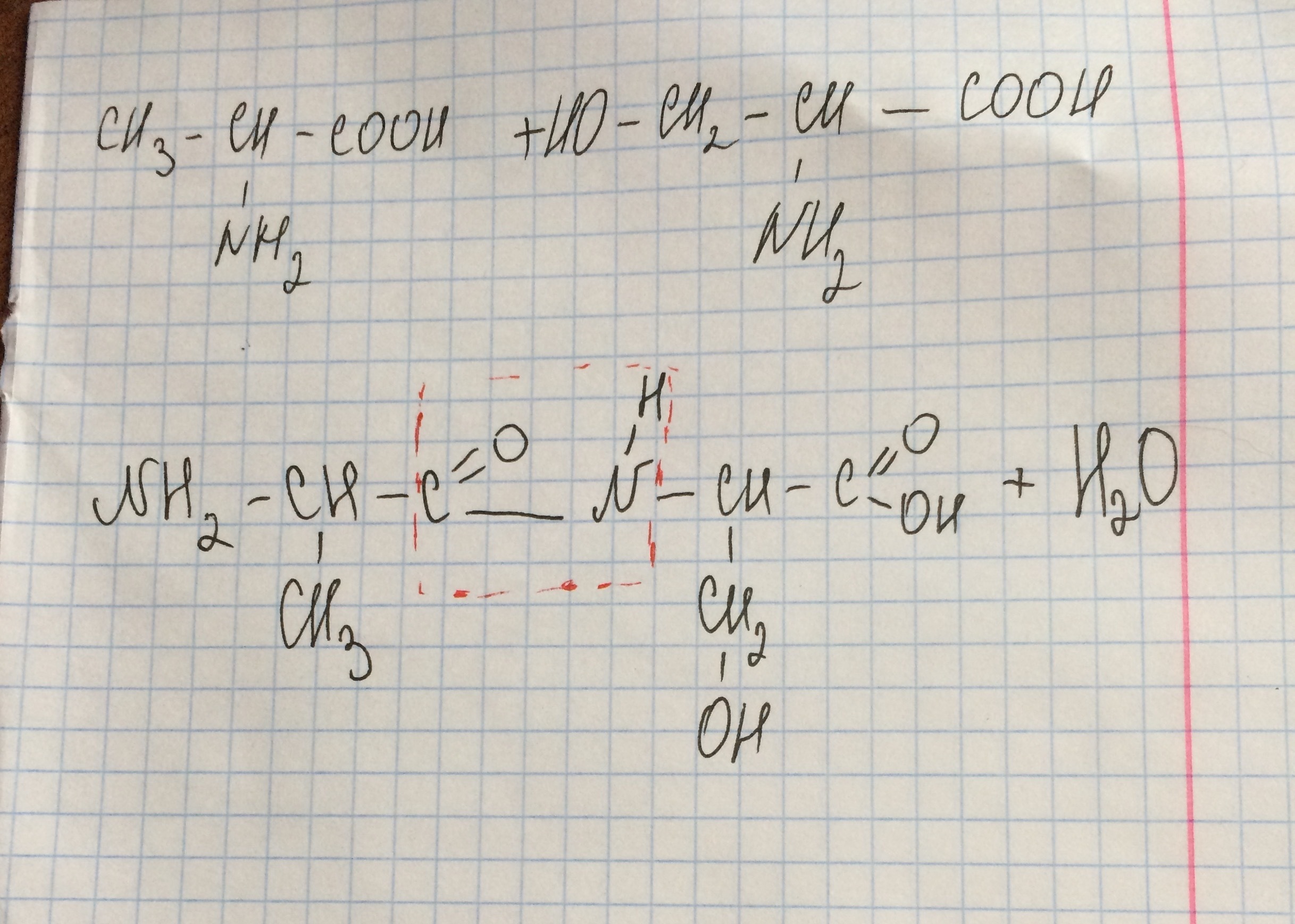 Реакции во вложении, красным цветом обозначена пептидная связь