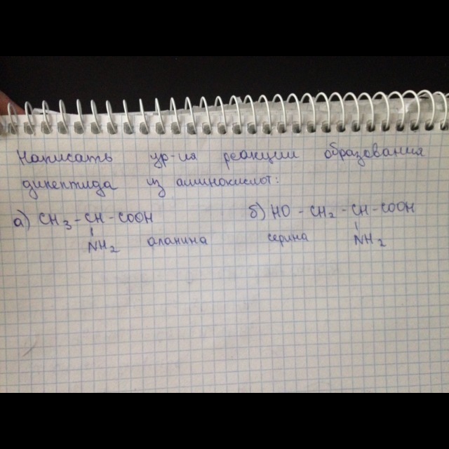 Надо написать уравнения из реакции образования дипептида из аминокислот(ФОТО)