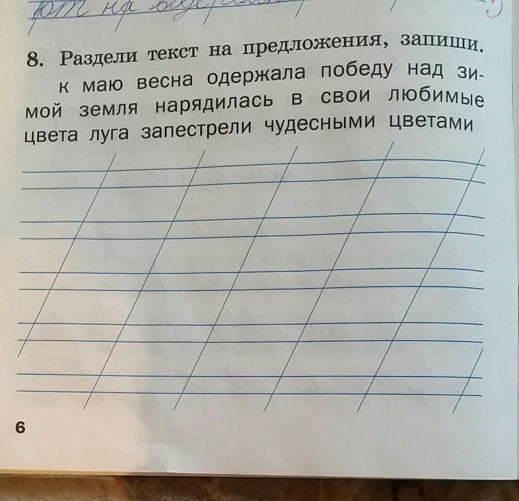 8.раздели текст на предложения запиши к маю весна одержала победу над зимой земля нарядилась в свои любимые цвета луга запестрели чудесными цветами что мне написать помогите п.ж