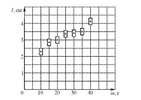 На графике представлены результаты измерения длины пружины при различных значениях массы грузов, лежащих в чашке пружинных весов.