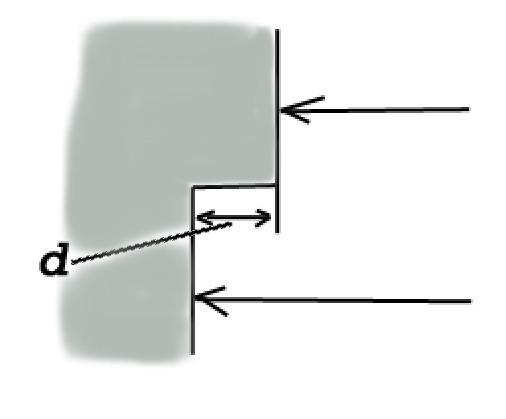 Нижний луч пройдет большее расстояние, чем верхний на r = 2·d