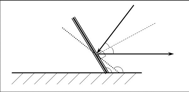 Таким образом, угол зеркала к поверхности стола должен быть