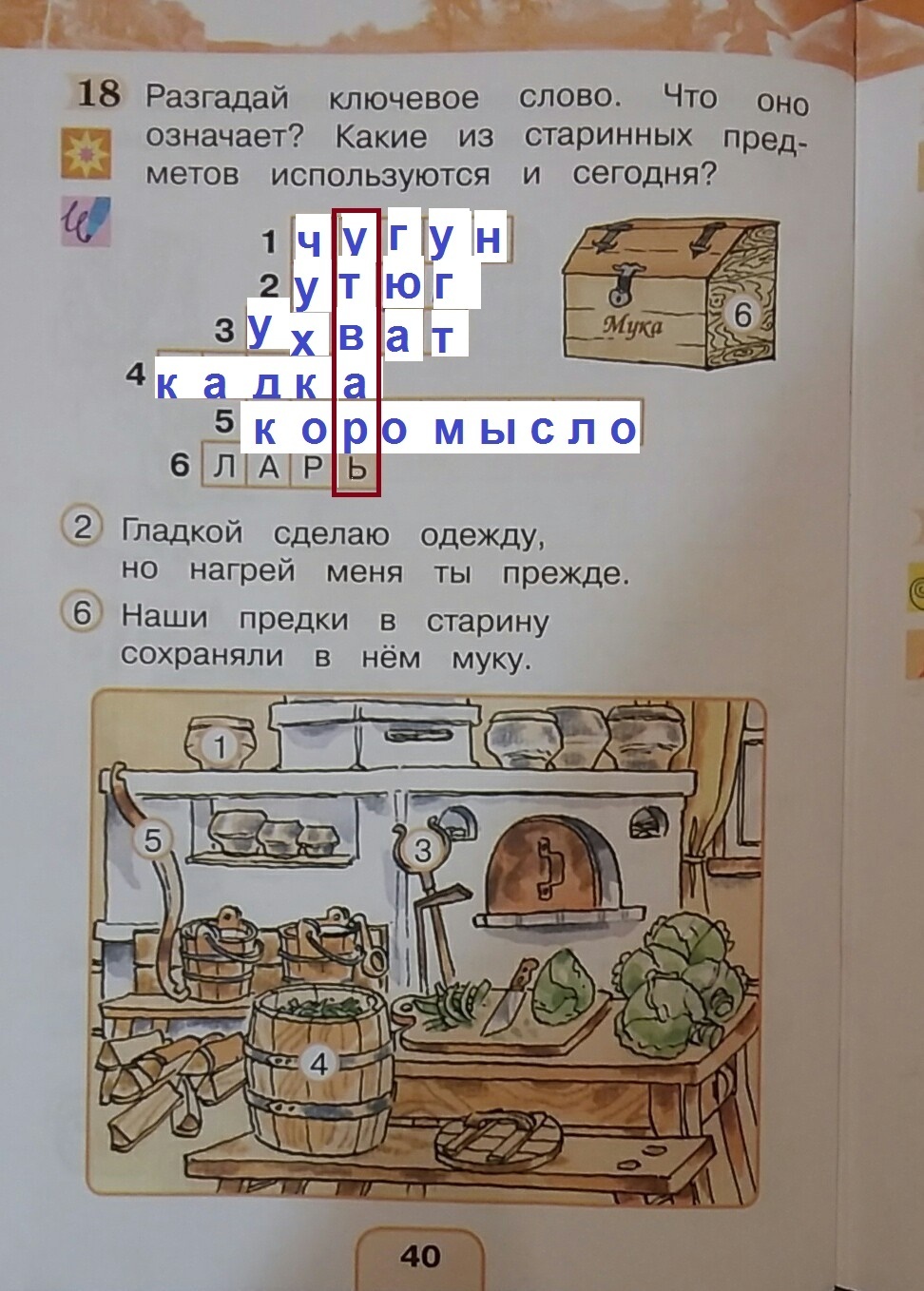 разгадай ключевое слово.Что оно означает.Какие из старинных предметов используются и сегодня?