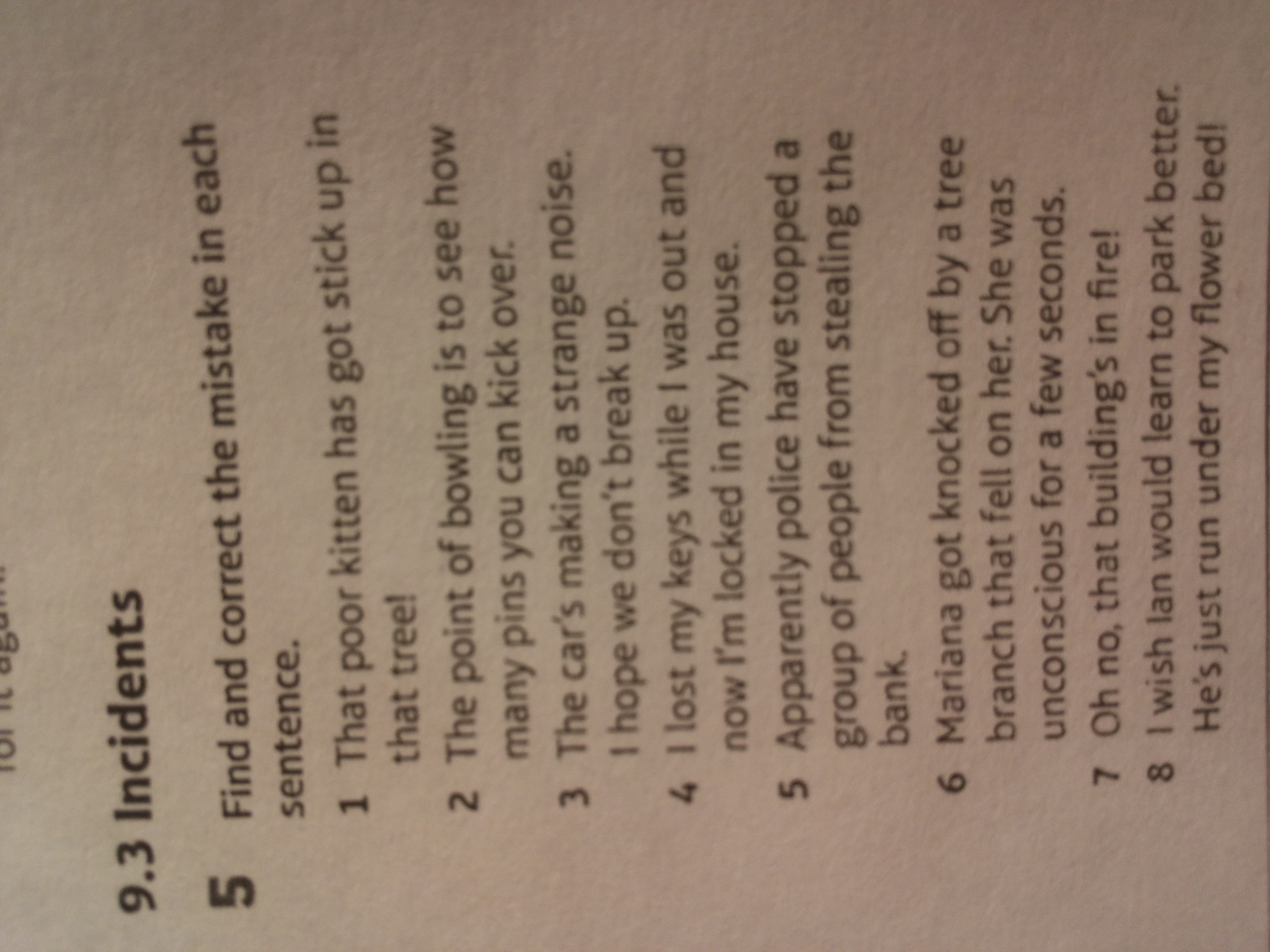 1 got stuck up 2 …you can knock over 3 ... break down 4 … locked out of my house 5 … from robbing the bank 6 … knocked out by … 9 … on fire 10 … run over my …