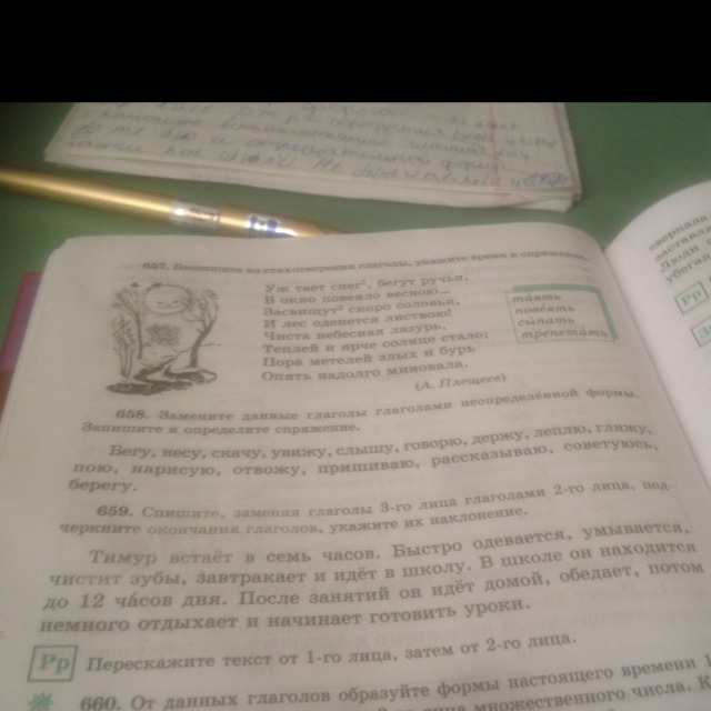 Просто напиши весь текст. И по учебнику подписывай над глаголами склонение вот и всё.