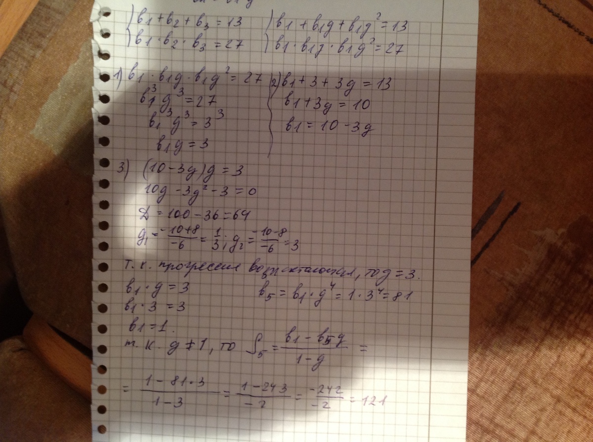 сумма трех членов возрастающей геометрической прогрессии равна 13,а их произведение равно27.Найдите сумму первых пяти членов этой прогрессии. 1)121 2)81 3)190 4)134 5)145